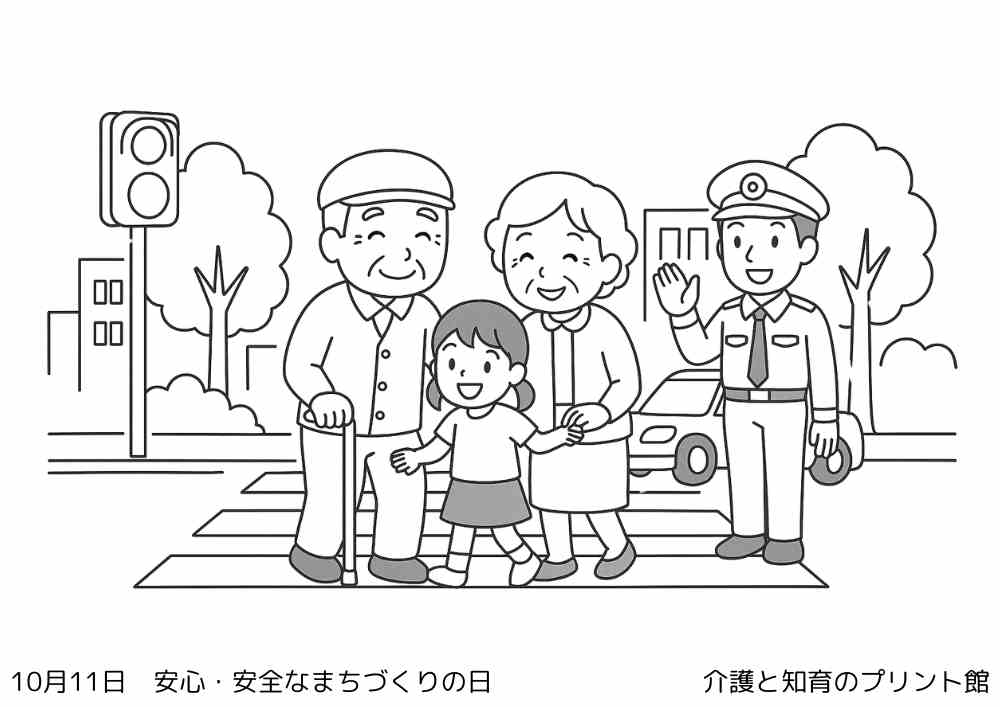 10月11日 安全・安心なまちづくりの日|今日は何の日?病院・施設の高齢者塗り絵【介護レク】