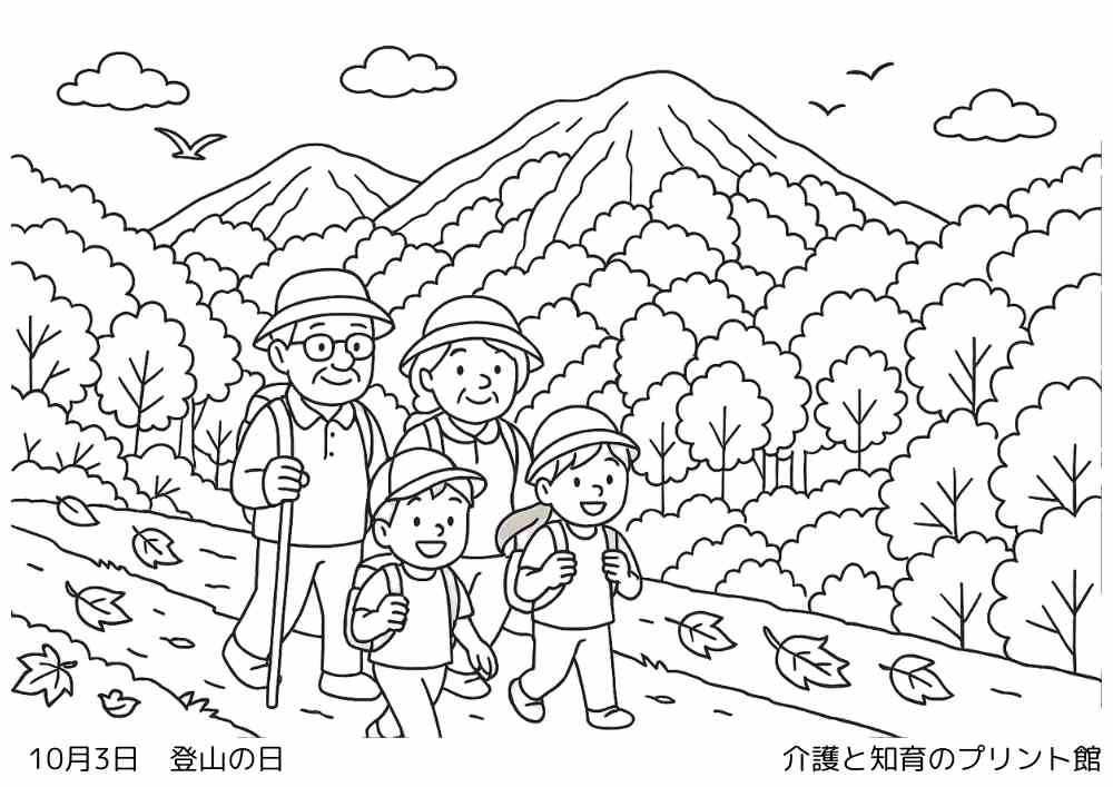 10月3日 登山の日|今日は何の日?病院・施設の高齢者向け無料塗り絵【介護レク】